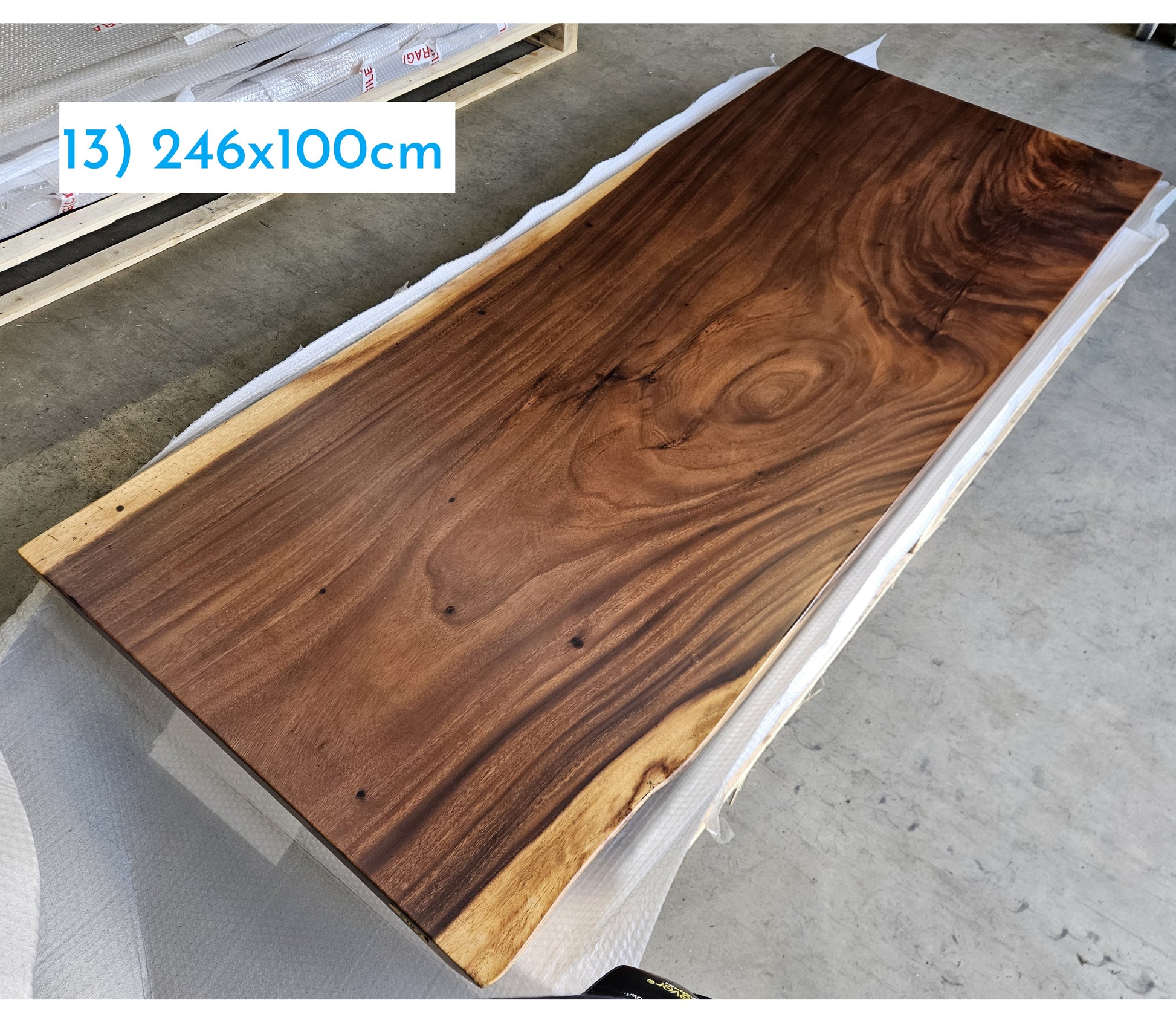 This is a solid walnut slab which is 246x100cm, thickness 5cm.