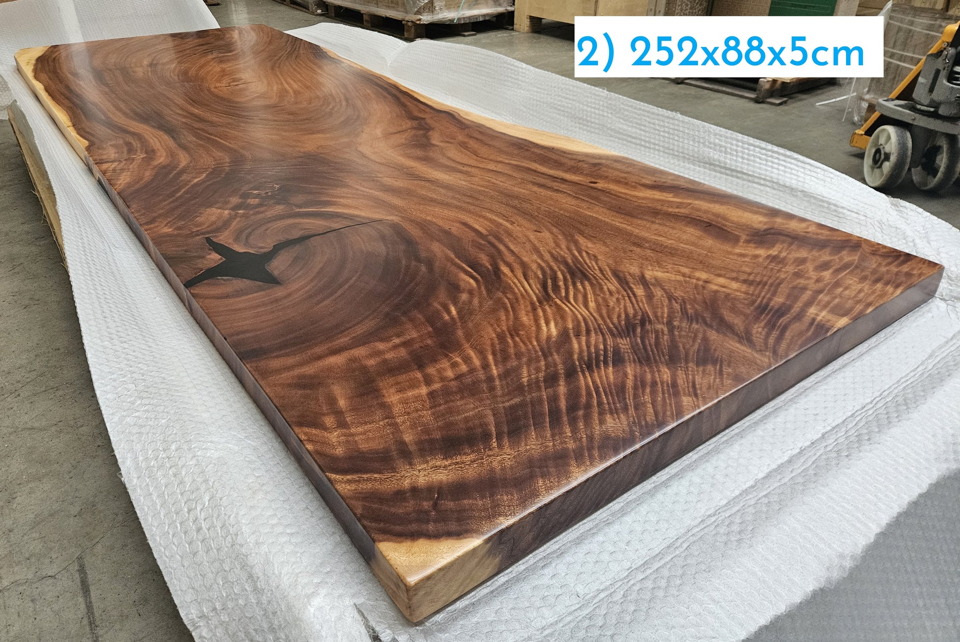 This is a solid walnut slab which is 252x88cm, thickness 5cm.