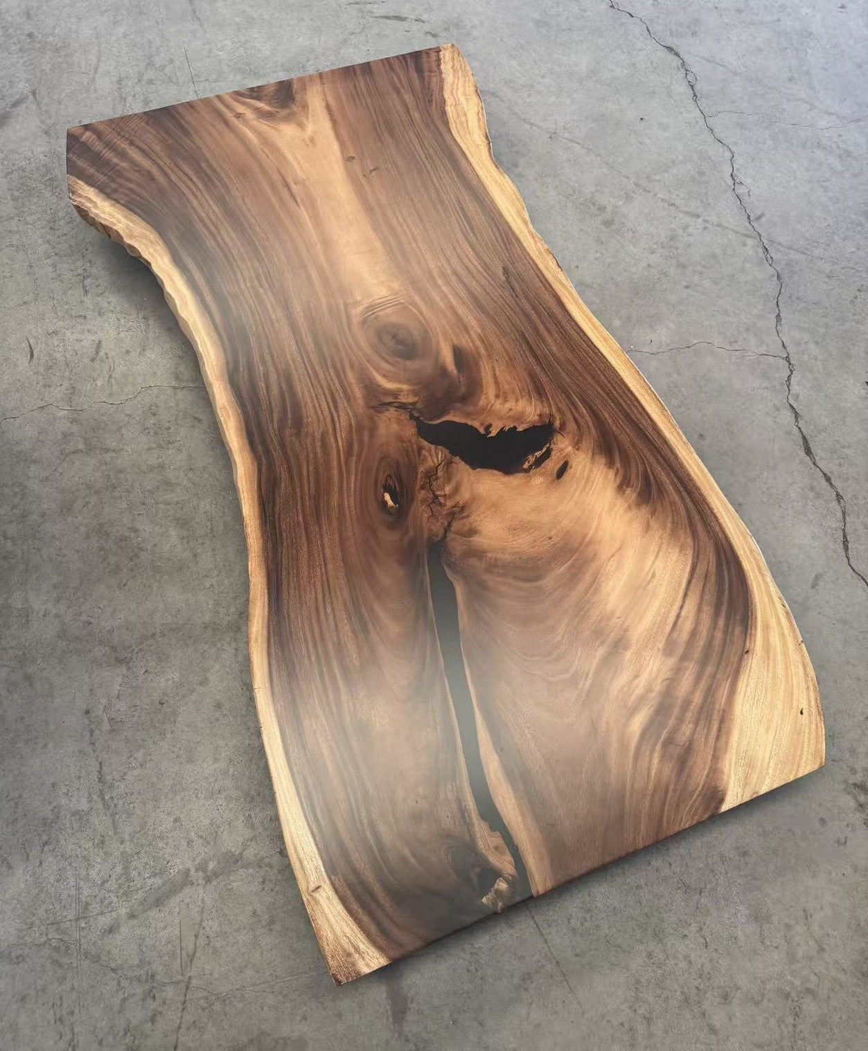 This is a solid walnut slab which is 230x112cm, its thickness is 5.3cm.