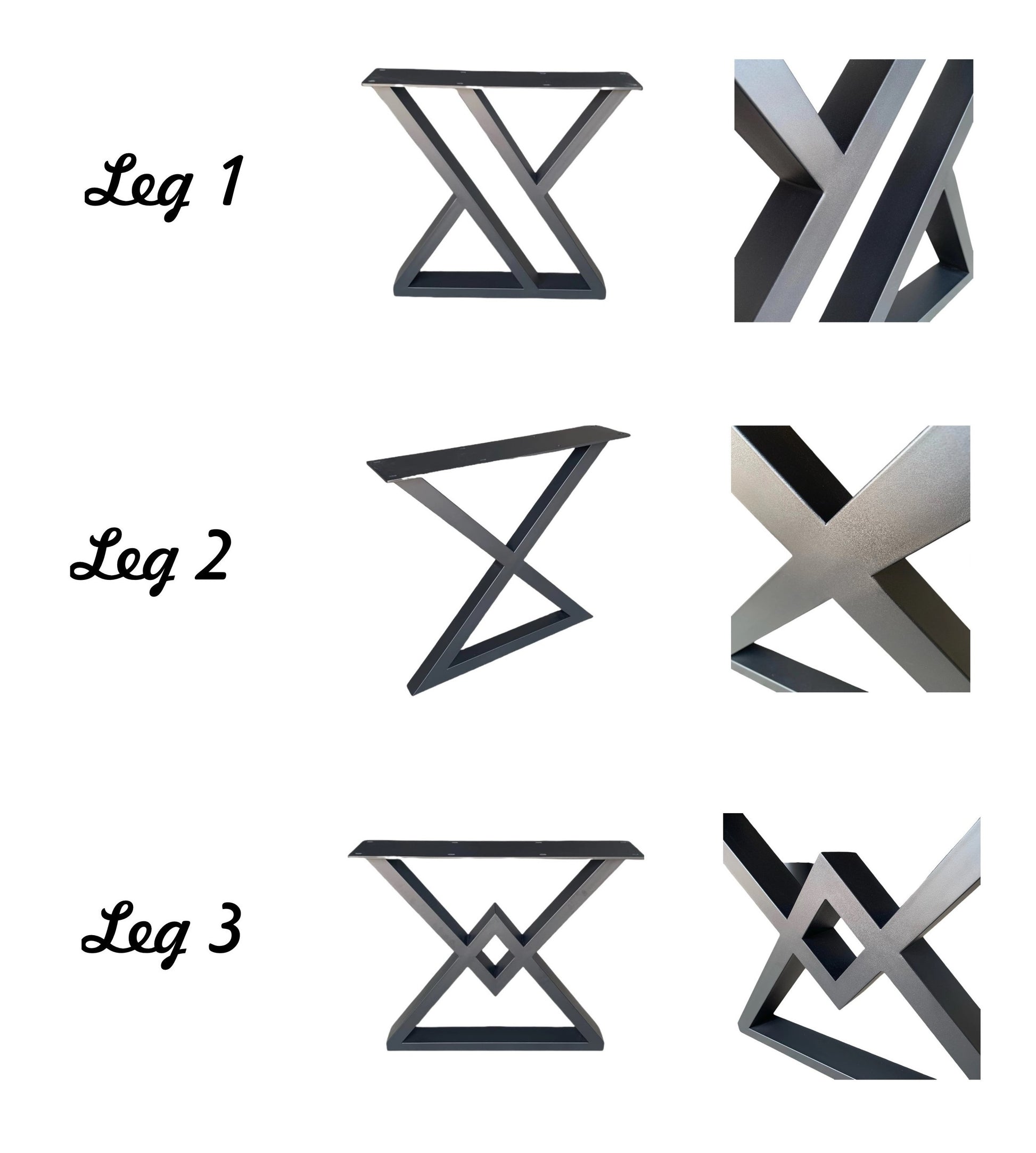 We have 9 different leg designs for you to choose from. All the legs provided are solid metal pipe legs which are strong and sturdy. They are connected to the underneath of the table via screws and bolts which are screwed on using an alan key, which is provided. Typically the legs can be mounted within five minutes.