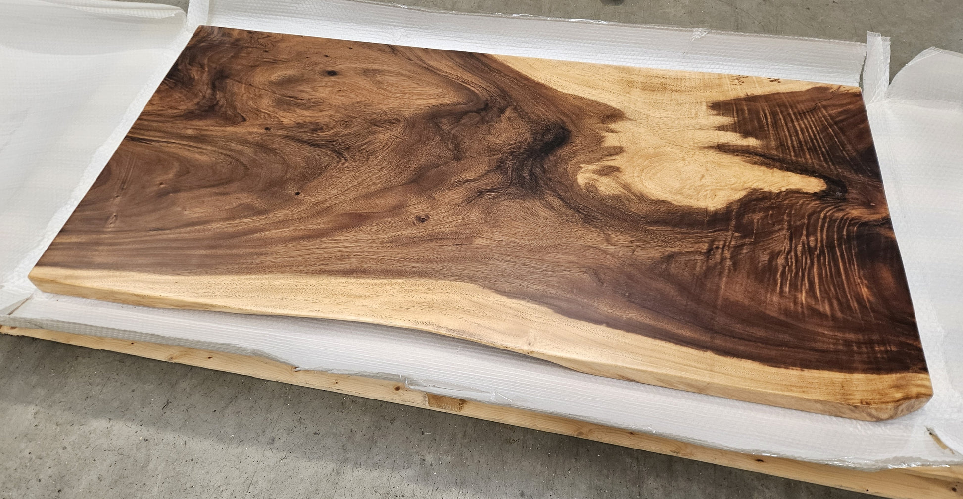 This is a solid walnut slab which is 180x86cm, thickness 5.5cm.