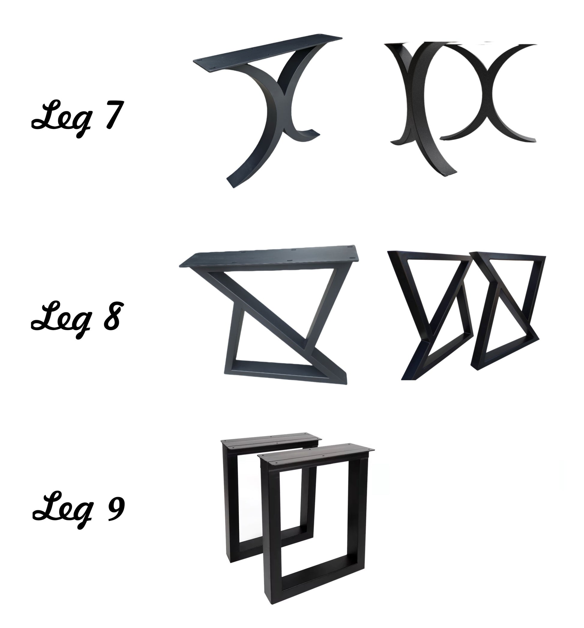 We have 8 different leg designs for you to choose from. All the legs provided are solid metal pipe legs which are strong and sturdy. They are connected to the underneath of the table via screws and bolts which are screwed on using an alan key, which is provided. Typically the legs can be mounted within five minutes.